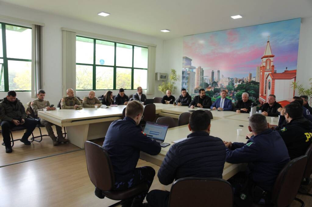 O Conselho de Segurança do Município de Chapecó realizou, nesta terça-feira (26), uma reunião na Prefeitura, com a presença do presidente da Comissão Central Organizadora da Efapi do Brasil, Felipe Balzan, e do promotor de Justiça, Simão Baran Júnior.