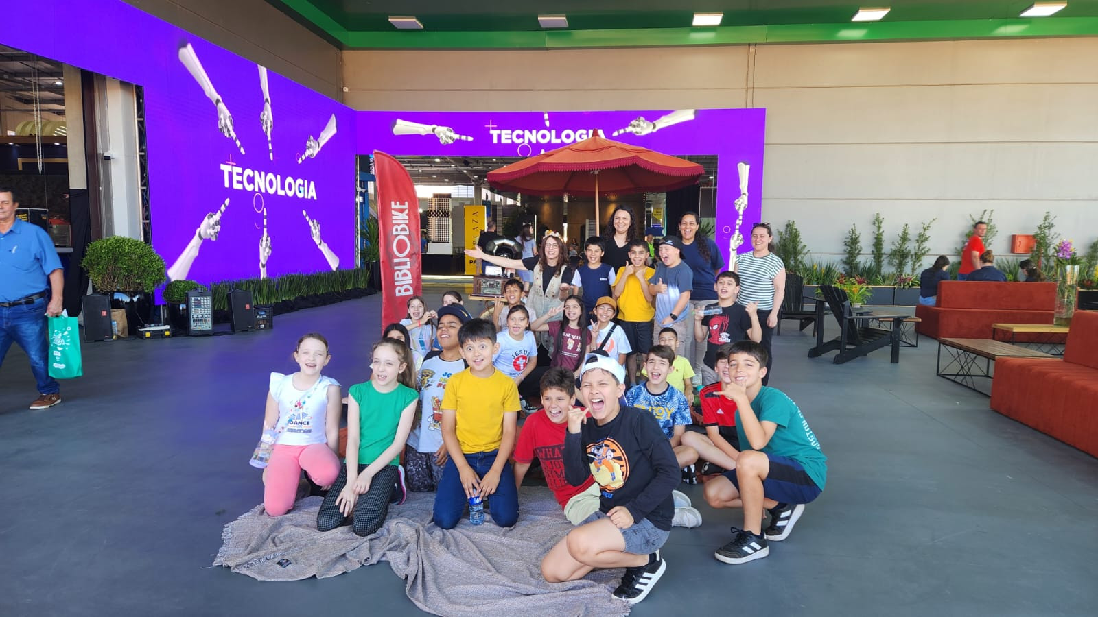Os alunos do 4º ano do EBM Diogo Alves da Silva, do bairro Efapi, participaram de uma experiência diferente nesta terça-feira (14), ao visitarem a Efapi do Brasil no parque Dr. Valmor Ernesto Lunardi. Eles foram surpreendidos com a intervenção da Bibliobike e que é uma biblioteca itinerante em uma bicicleta que, desde 2016, promove o incentivo à leitura.