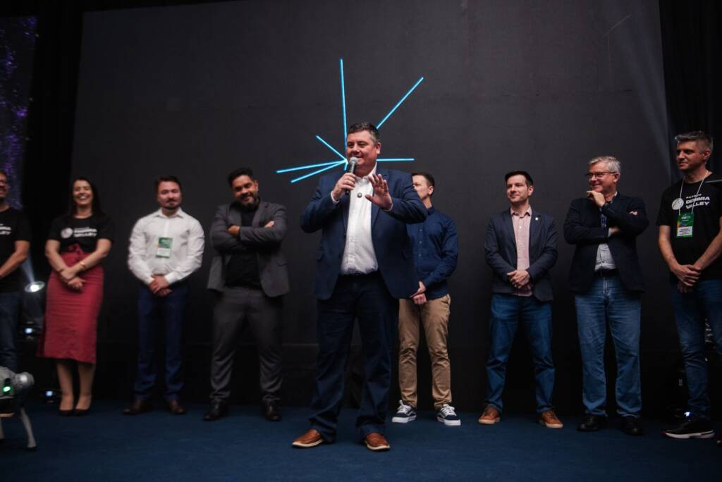 Valmor Júnior Scolari, vice-prefeito de Chapecó, destacou que o prefeito João Rodrigues enxerga a tecnologia como solução. “Por isso temos muito respeito pela Desbravalley, por isso temos a Semana da Inovação. Se pudermos apoiar financeiramente, vamos apoiar sempre”, disse, reforçando que a parceria com as instituições de ensino é fundamental para que tudo isso dê certo.