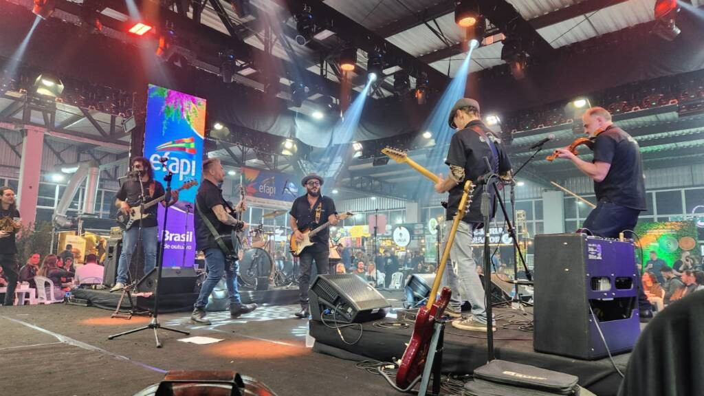 As apresentações culturais no Palco Nossa Arte estão movimentando o público nesta edição da Efapi do Brasil 2025. Com investimento de R$ 500 mil na estrutura e nos artistas, o espaço foi criado para valorizar talentos chapecoenses e oferecer experiências culturais, reunindo música, teatro, dança e outras linguagens artísticas. Entre as atrações da quinta-feira (16), estava a Banda Dazantigas, com 23 anos de história e que participa de todas as edições da feira.